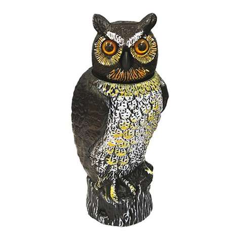 Búho eólico espantapájaros con ojos reflectantes y cabeza giratorio, accionado por el viento, indicado para ahuyentar aves y otros animales molestos de jardines, cultivos, etc. No necesita pilas, se puede colocar en tejados, muros y árboles. Producto fabricado de manera sólida y robusta, resistente las inclemencias del tiempo. *No emite sonido.