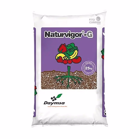 Naturvigor®-G, es una enmienda orgánica húmica totalmente natural y muy rica en ácidos húmicos y fúlvicos. La base del producto está constituida por estiércoles seleccionados de Ganadería Certificada, perfectamente compostados en atmósfera controlada. Se obtiene así un producto de alta carga de población microbiana. Además, la incorporación de Leonardita natural procedente de las propias explotaciones mineras de Daymsa, eleva las riquezas del producto y aporta extractos Húmicos de alta calidad y eficacia.
